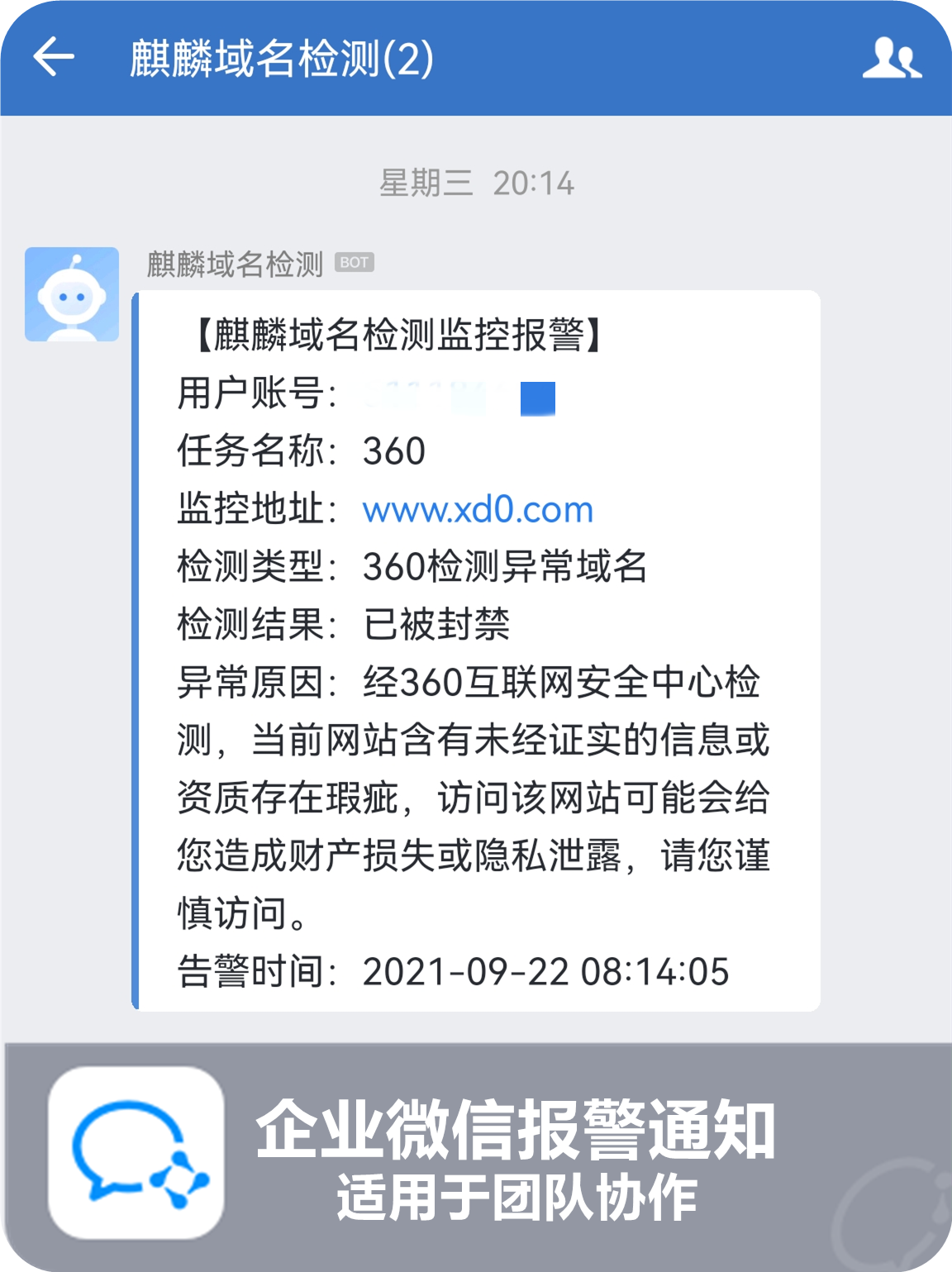 实时检测域名是否被微信拦截,并发能力强,准确率高